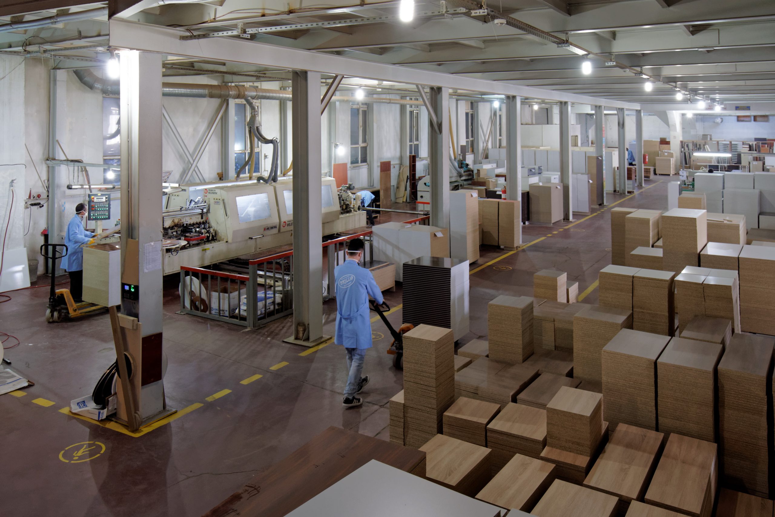 MDF, yonga levha, suntalam ve doğal kaplama gibi malzemeler, CNC ve otomatik kesim makineleri ile hassas ölçülerde işlenir.