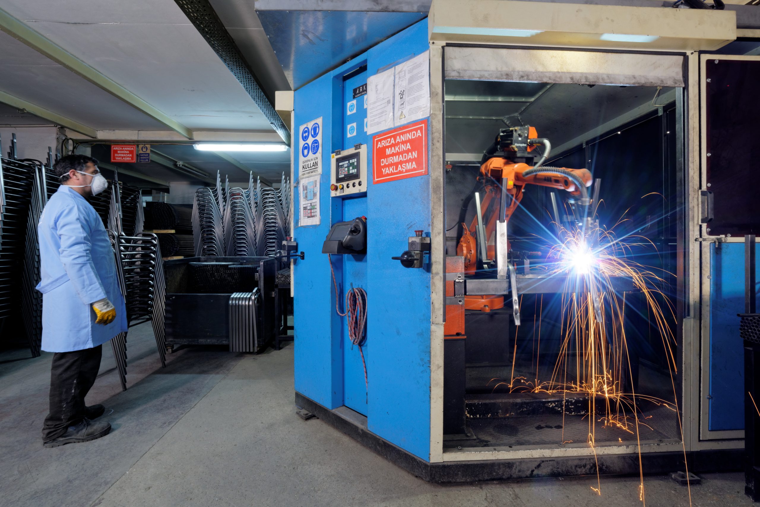 Demirhane bölümümüz, ofis koltukları ve masa sistemlerinde kullanılan metal taşıyıcıların üretildiği alandır.
